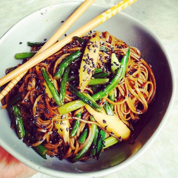 - V osolené vodě uvařte soba nudle podle návodu a sceďte.